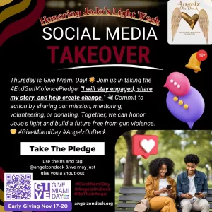 Commit to action by sharing our mission, mentoring, volunteering, or donating. Together, we can honor JoJo’s light and build a future free from gun violence. 💛 #GiveMiamiDay #AngelzOnDeck