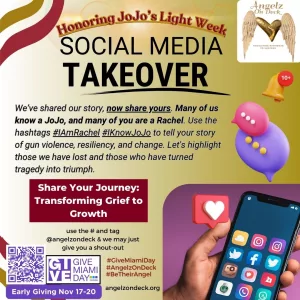 Many of us know a JoJo, and many of you are a Rachel. Use the hashtags #IAmRachel #IKnowJoJo to tell your story of gun violence, resiliency, and change. Let’s highlight those we have lost and those who have turned tragedy into triumph.